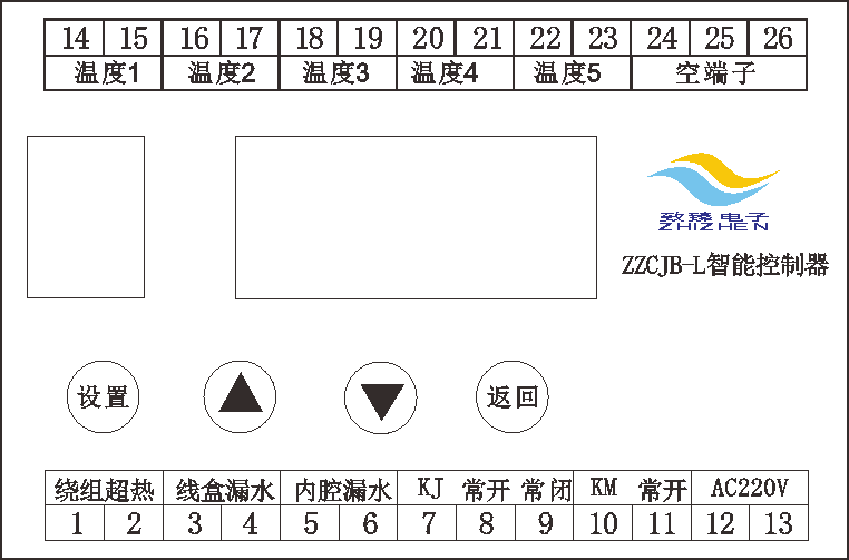 5路軸承超溫、1路繞組超熱、電機內腔進(jìn)水、油室或接線(xiàn)盒進(jìn)水報警閃爍顯示及報警無(wú)源觸點(diǎn)輸出。
